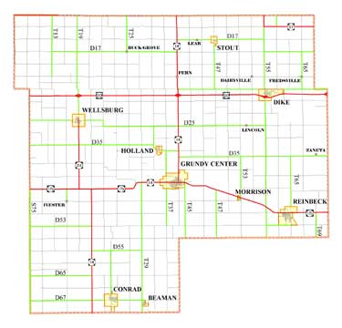 Beaman, Conrad, Dike, Grundy Center, Holland, Morrison, Reinbeck, Stout, Wellsburg
